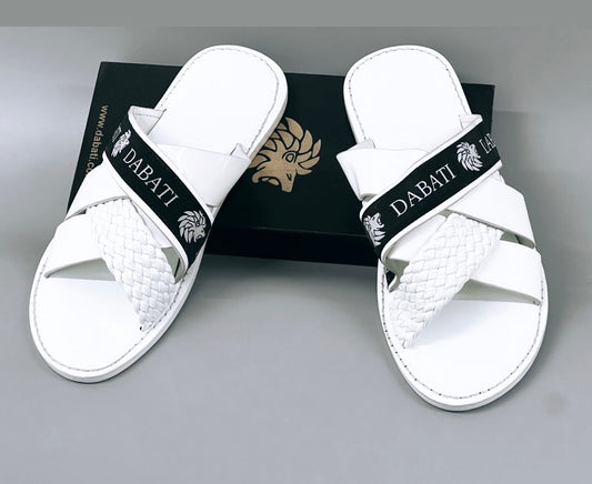 White cross strap 100% wetloose leather slippers